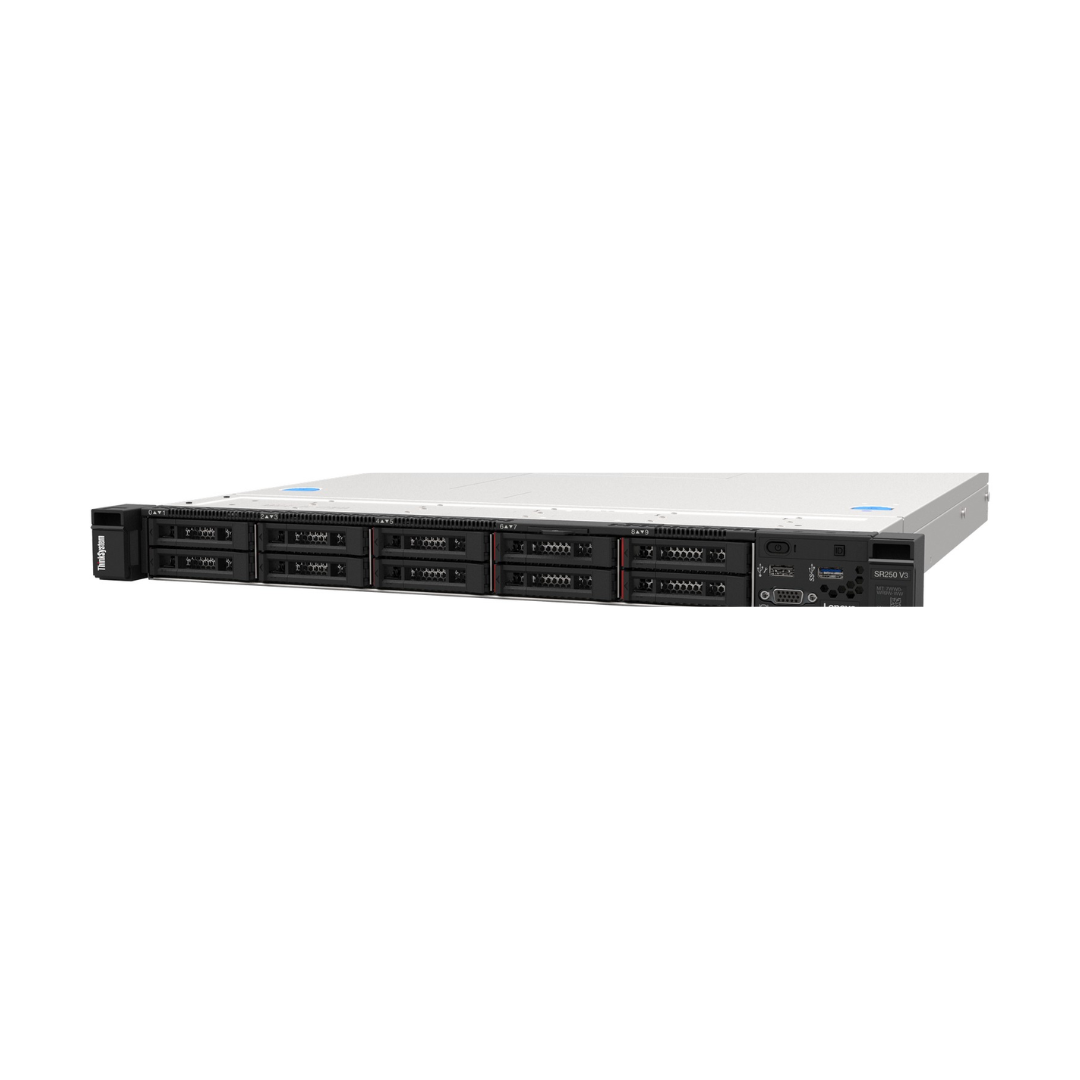 Lenovo ThinkSystem SR250 V3 Rack Server, powered by Intel Xeon processors and 32GB of RAM, delivers dependable performance and is an ideal choice for use in small business and entry level workloads.